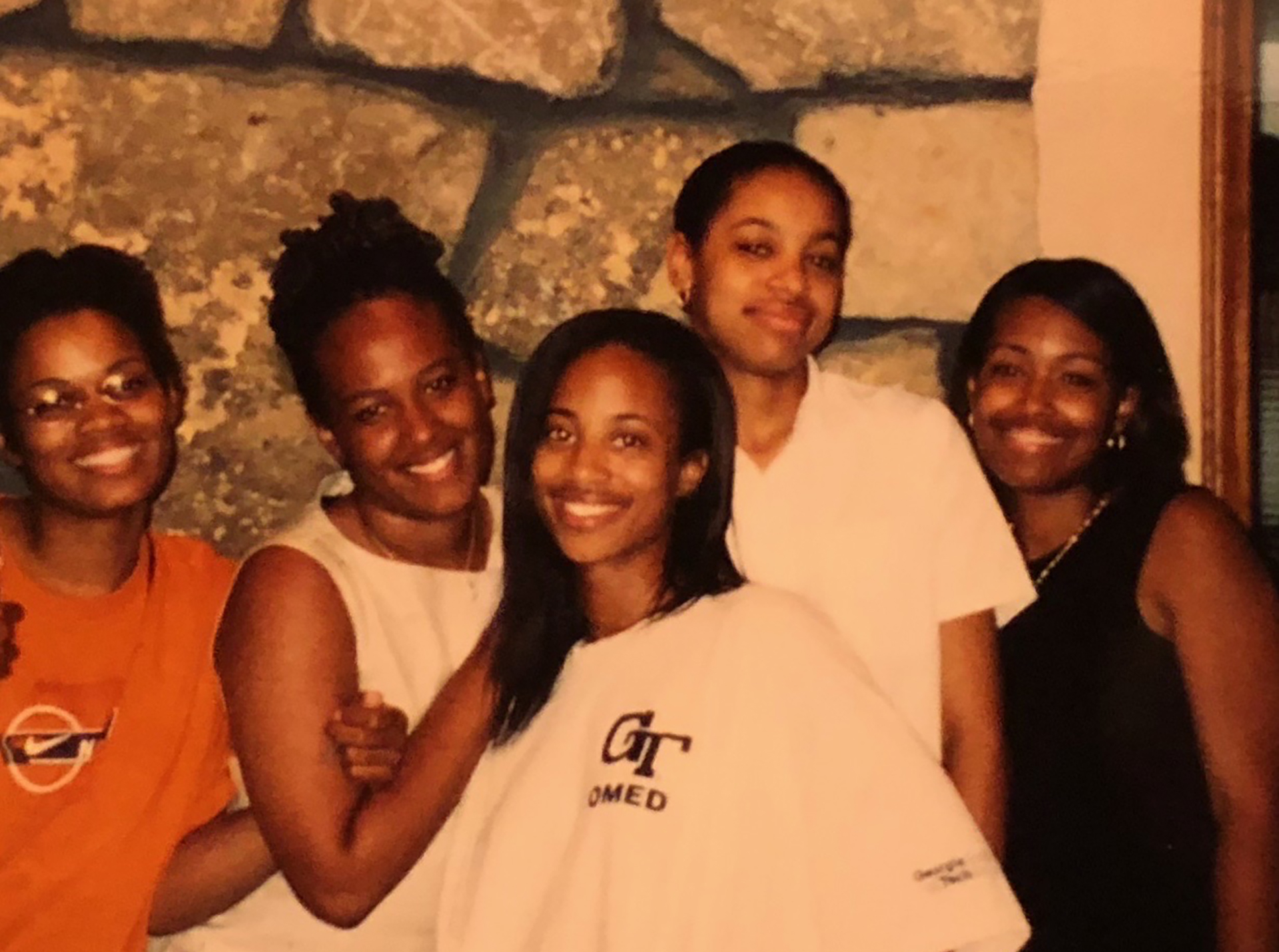 Rachel Dunbar 97Ox (formerly Nall), Kenitta Baker 97Ox 99B (formerly Wade), Stephanie Reed 97Ox 99C, Camille Richards 97Ox 99B (formerly Perry), and Romona Herbert 97Ox 99C, all attended Oxford College and Emory University together in the late 1990s. Since then, they have remained close friends, more like family, supporting each other through various life events and milestones.